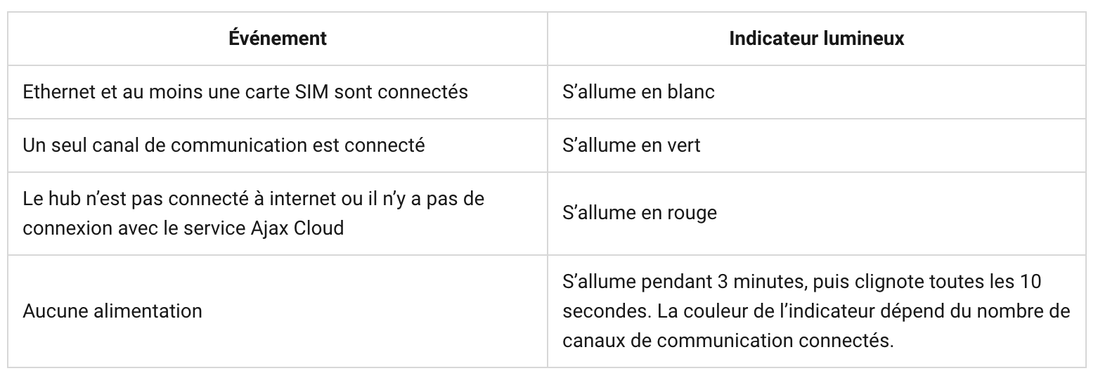 Veuillez utiliser les deux canaux de communication pour assurer une communication plus fiable entre le hub et Ajax Cloud.