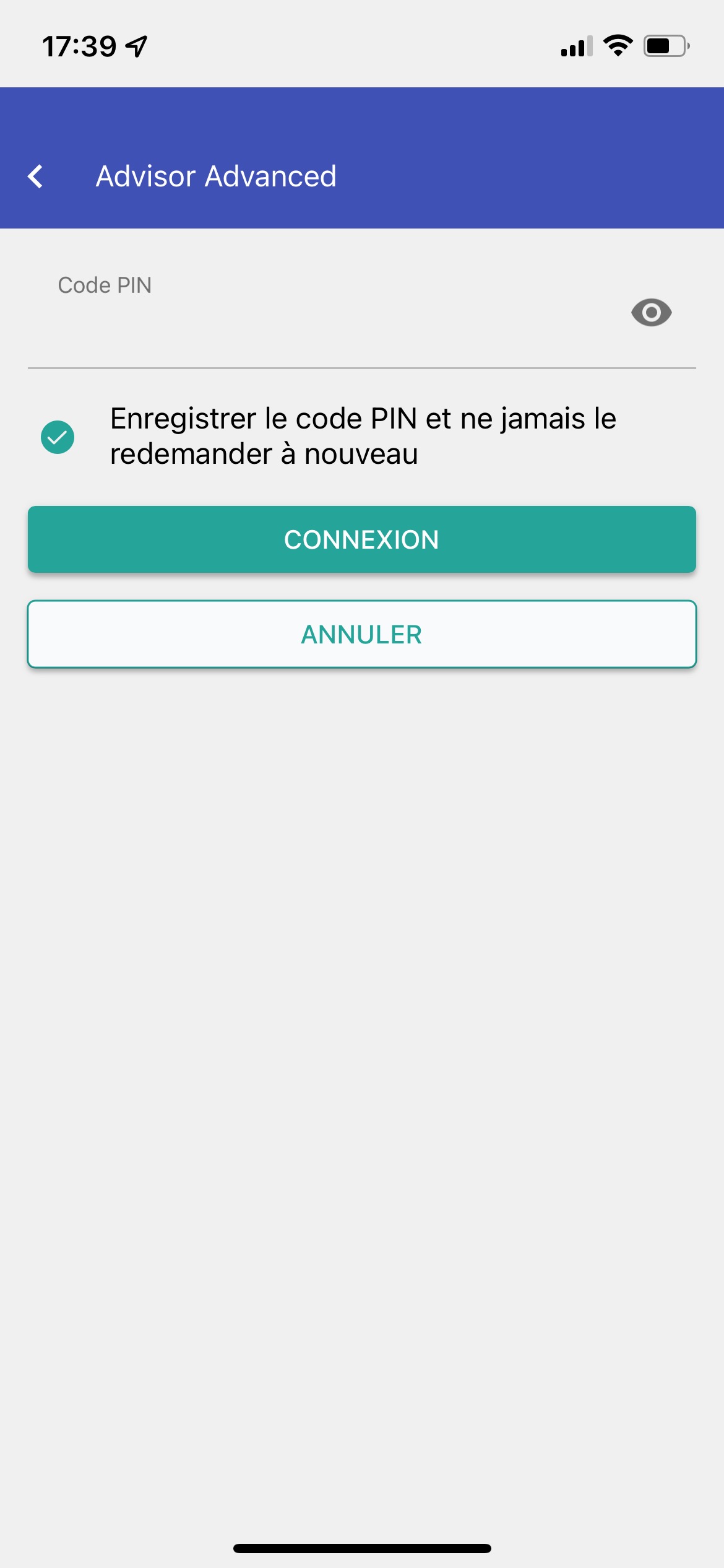 Avant toute connexion, pouvez-vous me confirmer si vous avez bien téléchargé l’application Advisor sur votre appareil ?